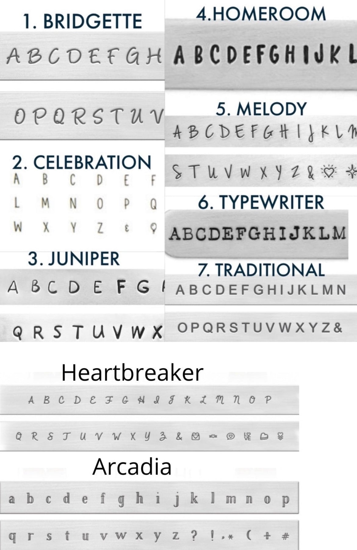 *Please note some fonts may only fit up to 5 letters.